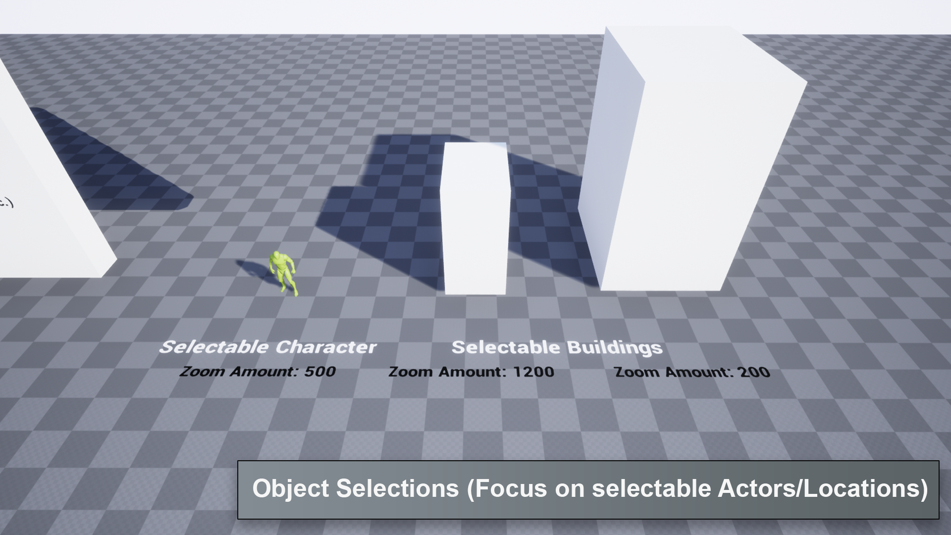 - Object Selections: Enable player to focus on selectable actors such as in-game characters, special locations etc.