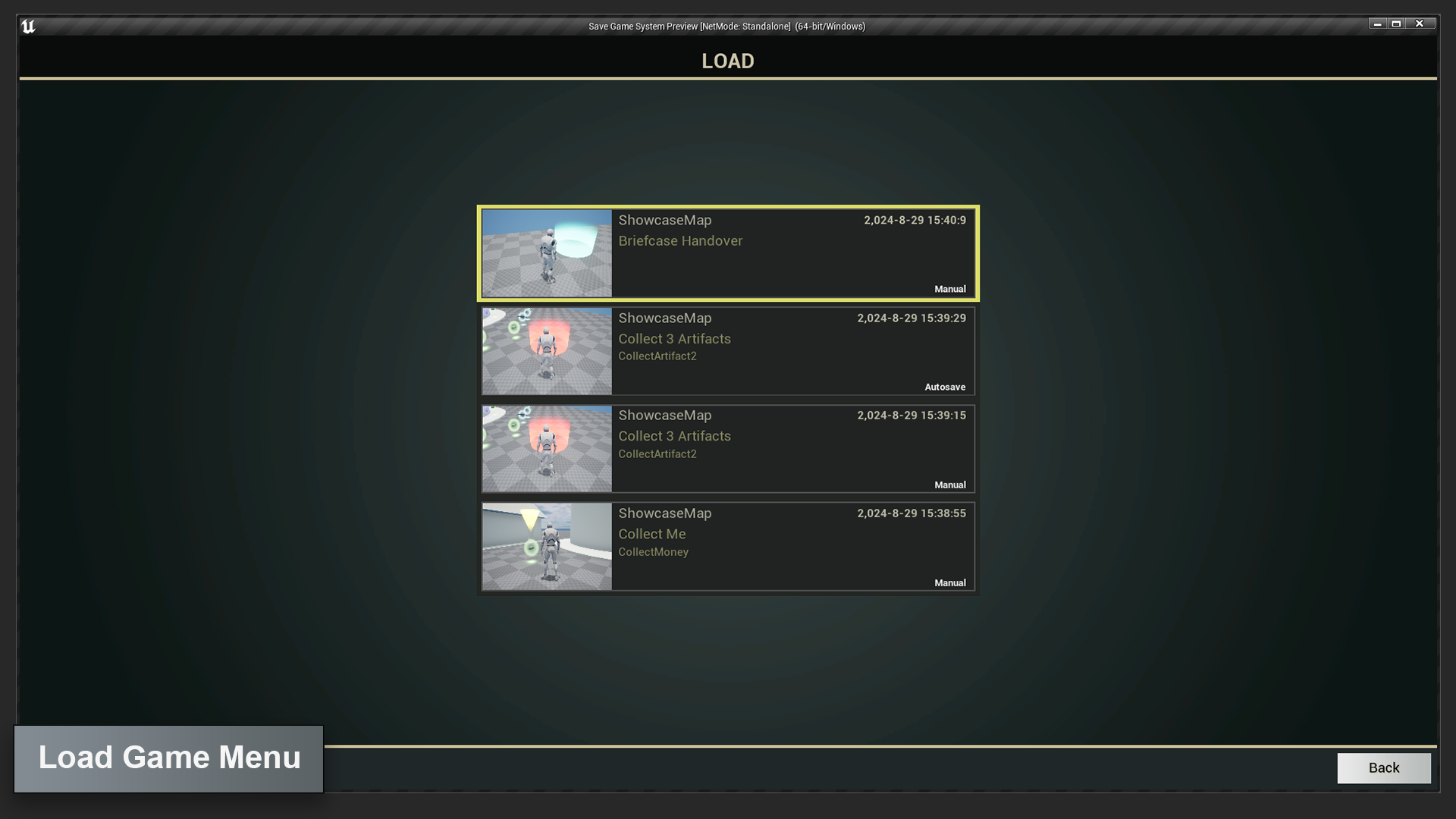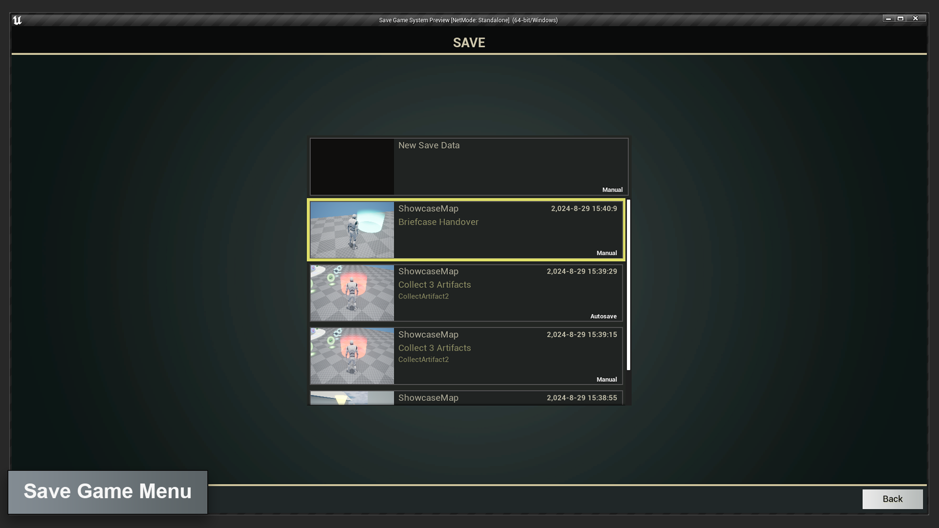 Enhance your game’s user experience with our Save Game System. This robust and versatile system is designed to provide a comprehensive solution for saving and loading game states, catering to a wide range of game types and genres. Whether you're developing a complex RPG, an open-world adventure, or a fast-paced action game, our Save Game System empowers you to implement a reliable and flexible saving mechanism, ensuring your players' progress is always secure and accessible.