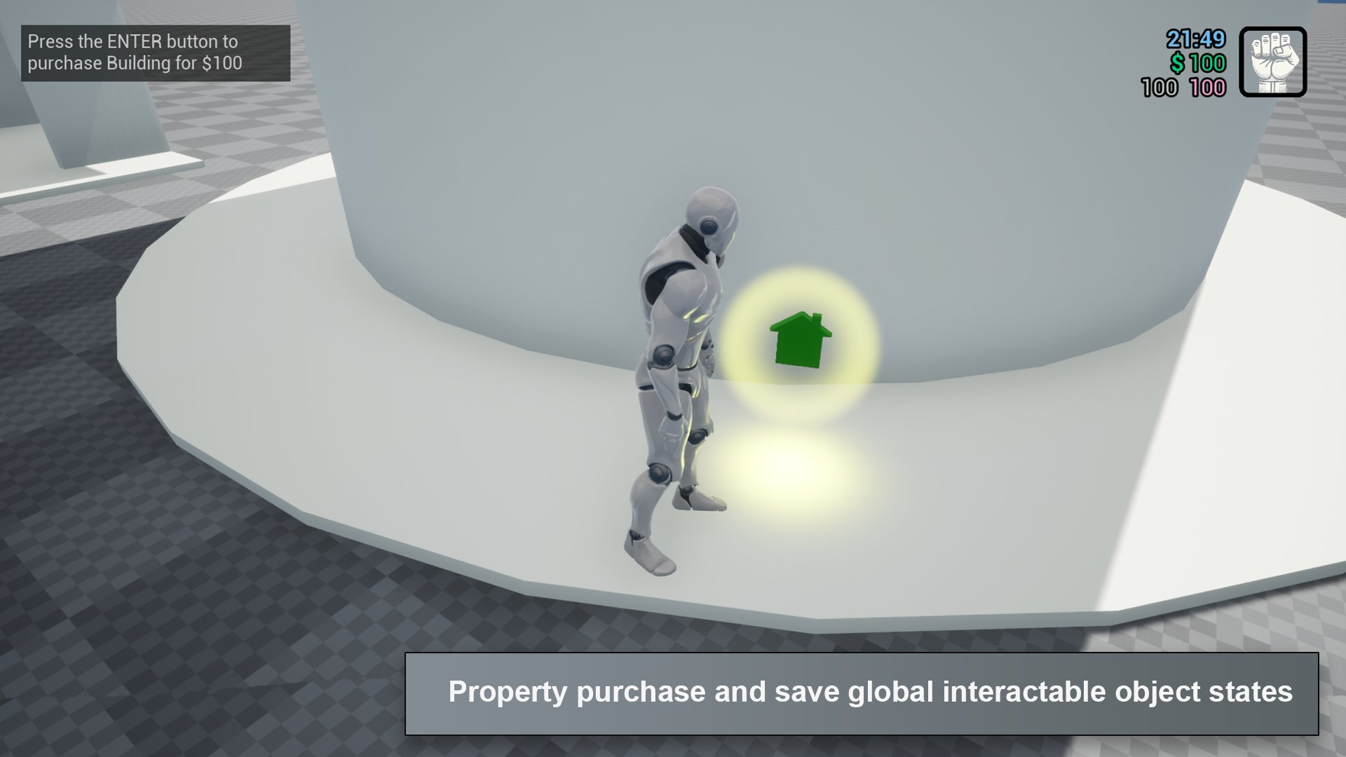 - Property Purchases and Global Interactable Object State Savings: Manage and save the states of purchased properties and interactable objects, ensuring consistent gameplay mechanics and world interactions.