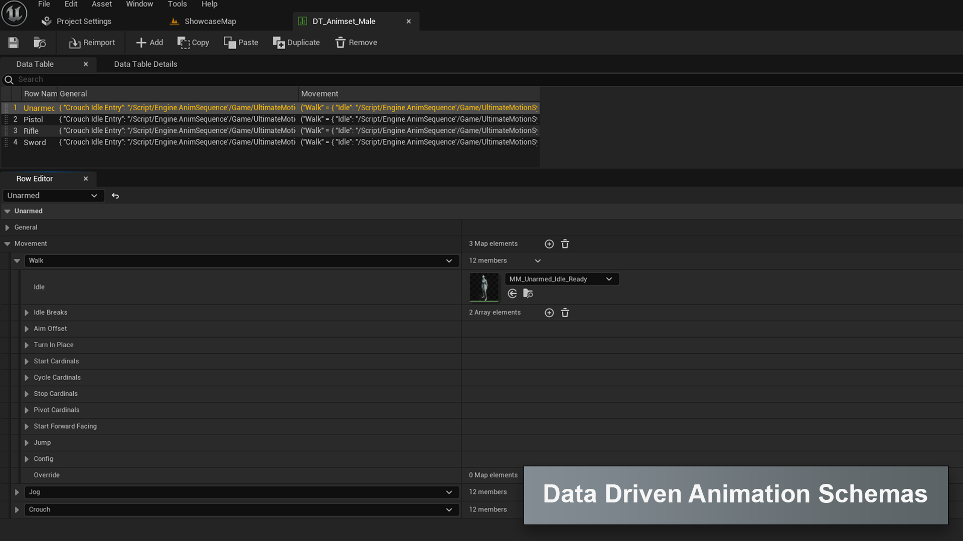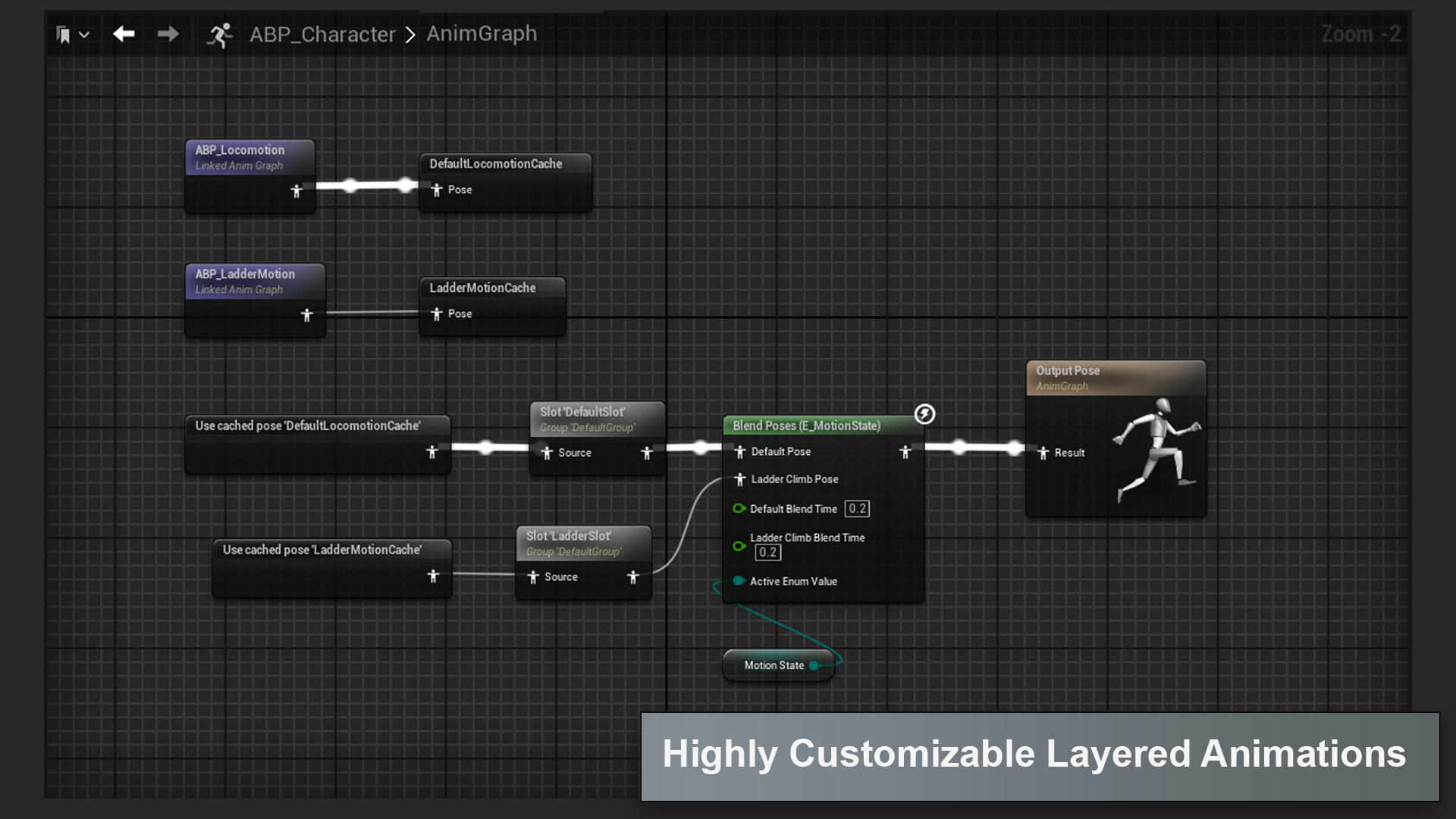 - Data-Driven Animation Framework: Utilize data-driven logic to define and switch between animations seamlessly based on character states and events.