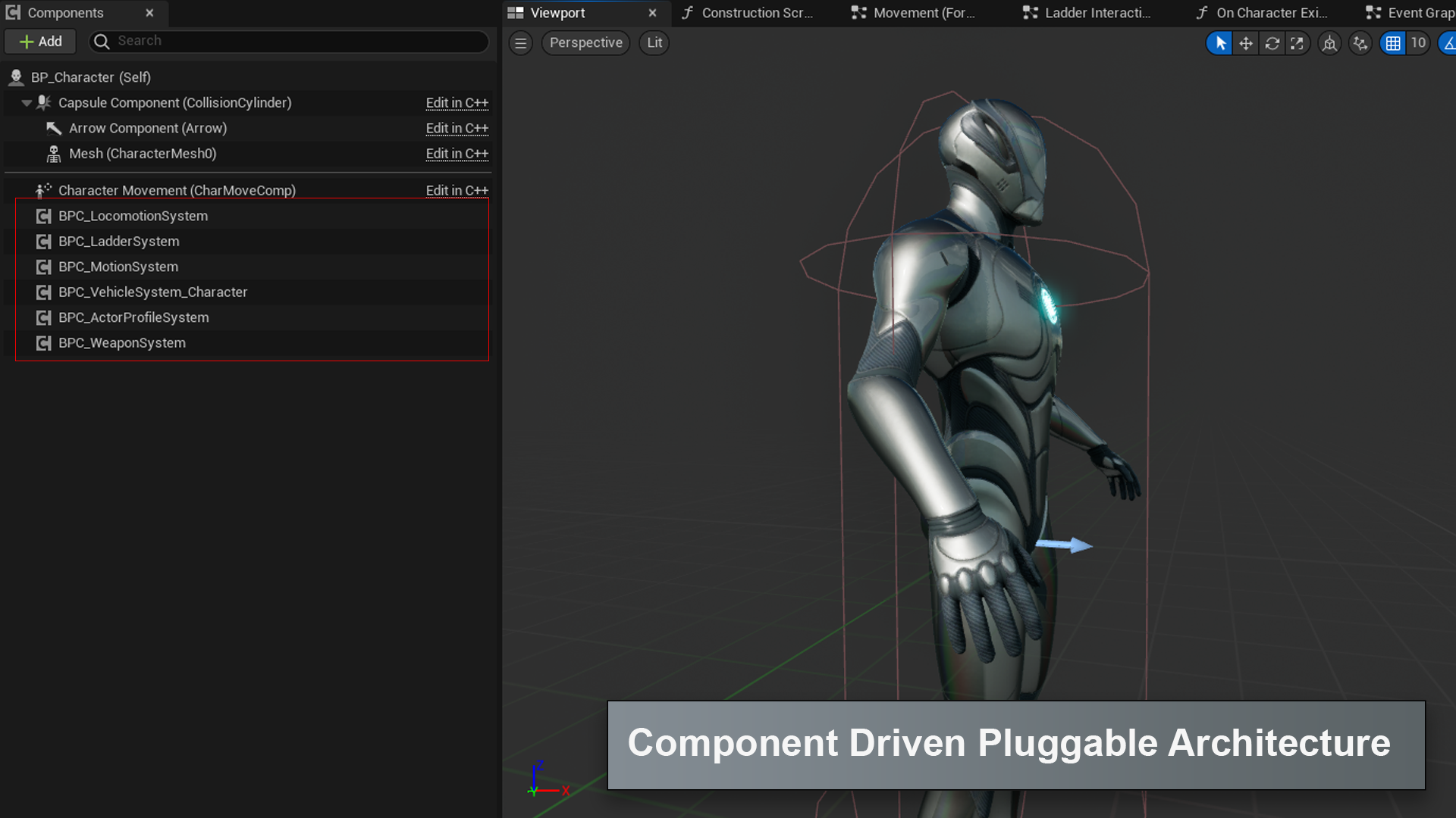 - Ladder Climbing: Contains well designed animation transitions that leverage the latest best practices in Unreal Engine Animation workflow. Easily customizable and feature extensible.